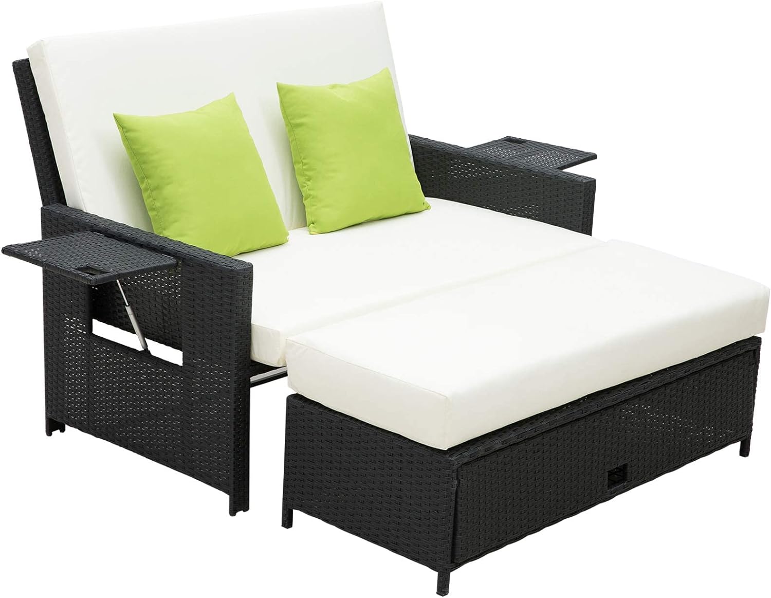 Both sides of this lounger have pop-up tabletops that are attached via a hydraulic piston system, helping them to stay in the upright position without any mechanical locks (keeping your drinks and snacks in place).